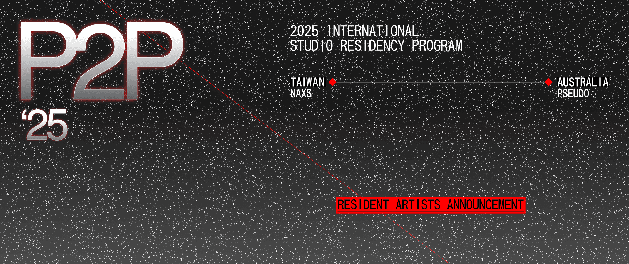 The P2P Residency Program announces this year’s selected artists — Olivia Koh (Australia) and — Robert Chang Chien (Taiwan).